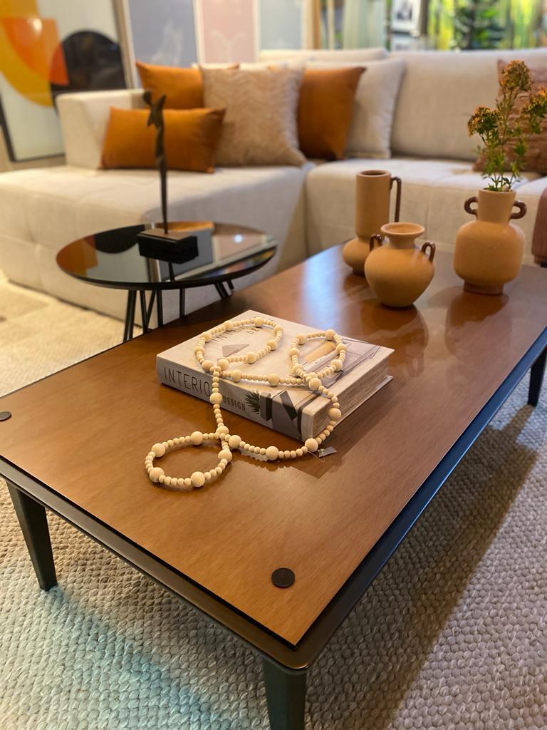 A mesa de centro também pode ser usada como suporte para uma luminária ou abajur. Além de iluminar o ambiente, a luminária pode servir como um elemento decorativo por si só. Escolha um modelo que se destaque e complemente o estilo da sua sala.